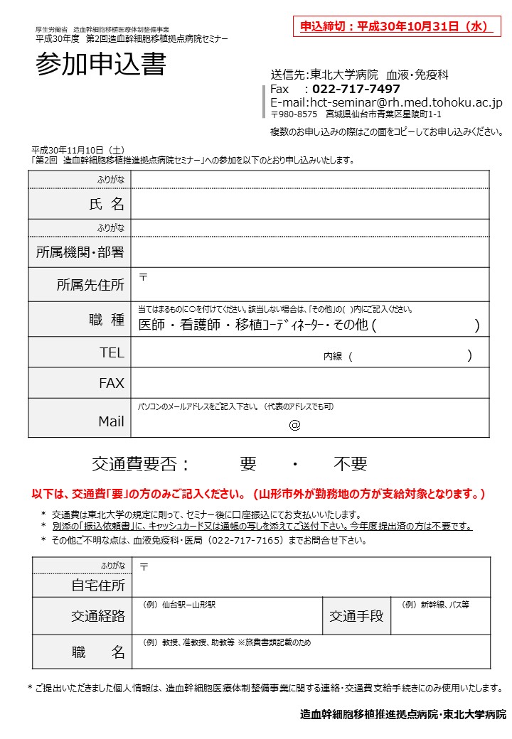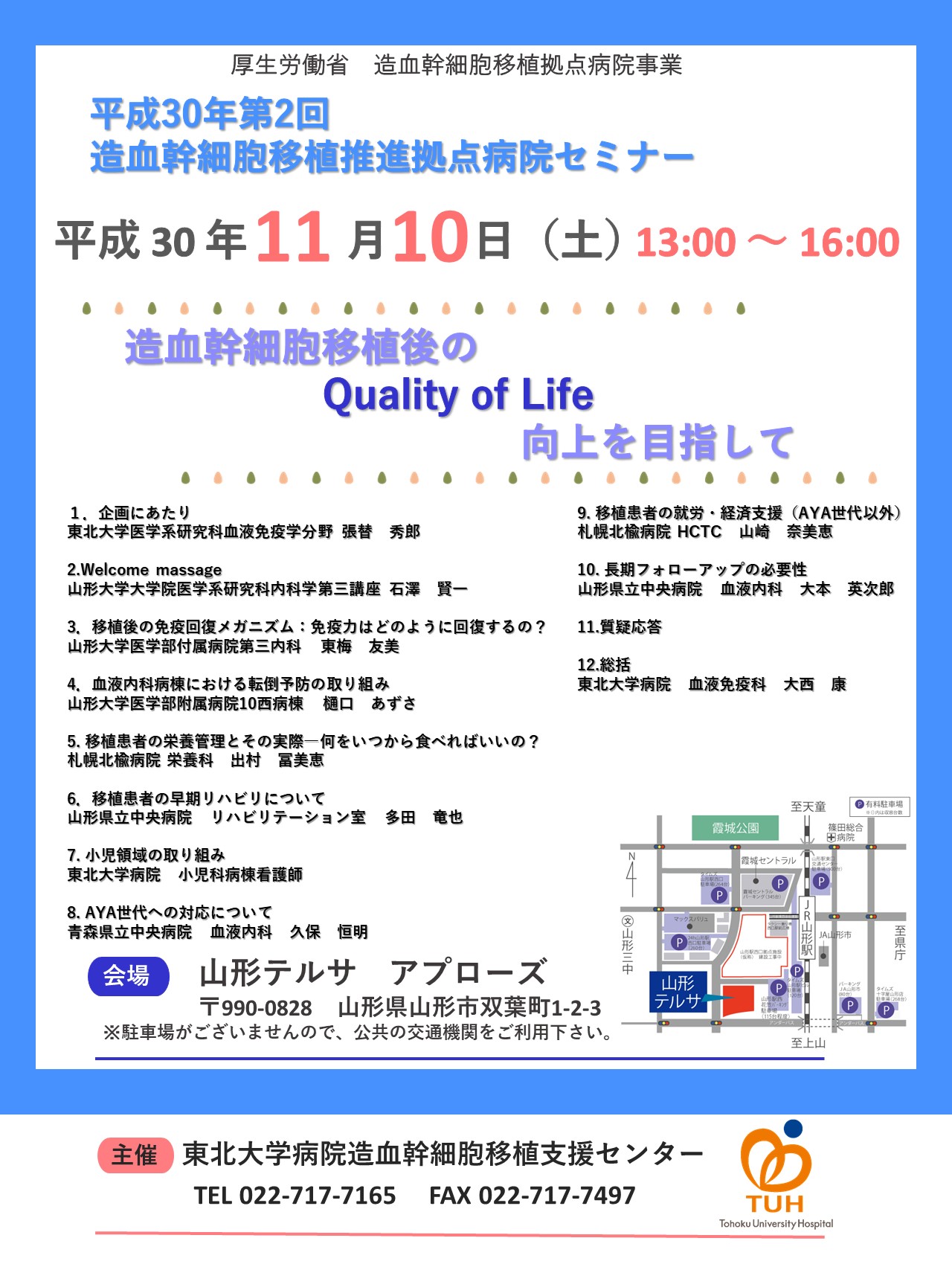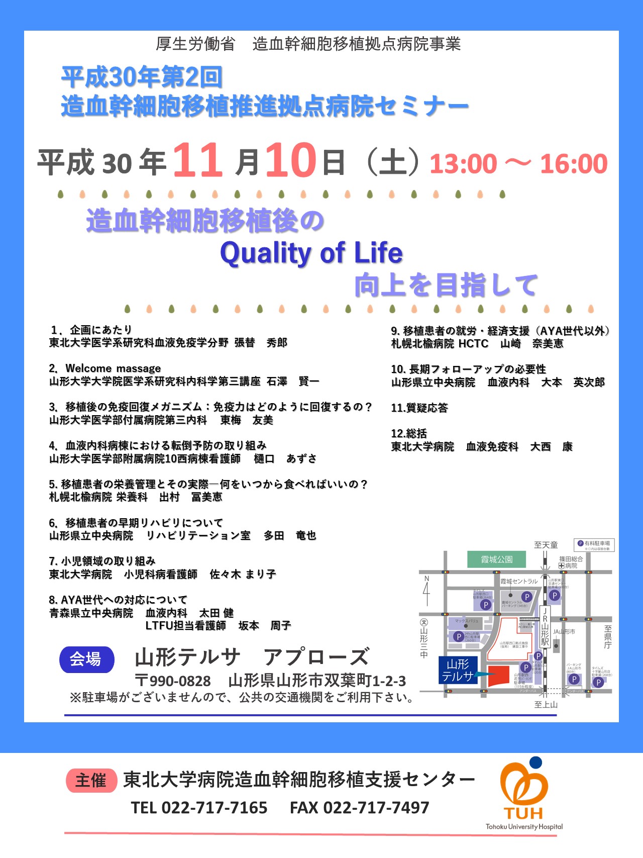 平成30年度第2回造血幹細胞移植推進拠点病院セミナー開催のお知らせ(2018/11/10開催)