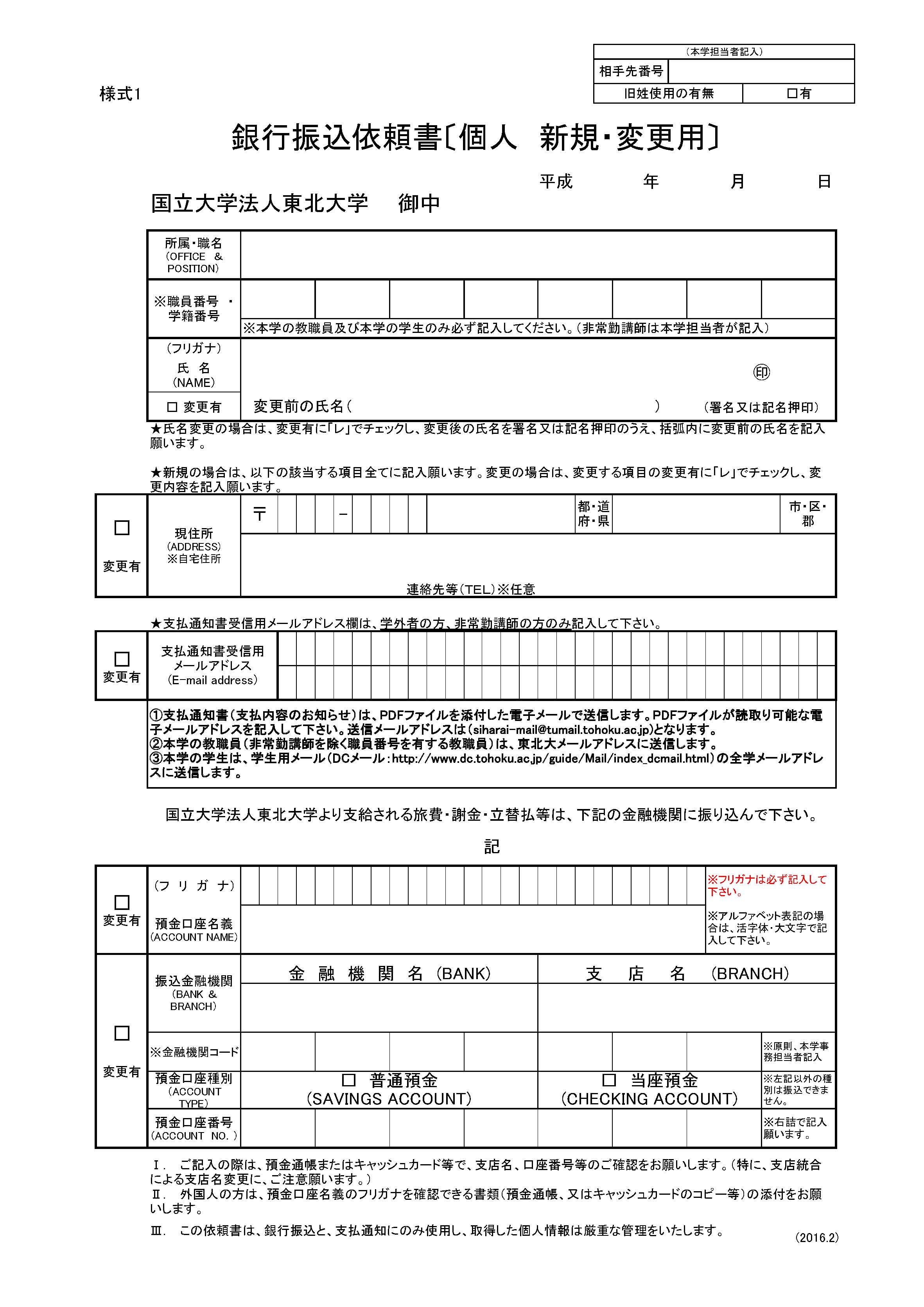 ※ 銀行振替依頼書 はこちらをご利用ください。