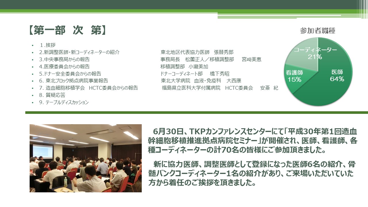 平成30年度第1回造血幹細胞移植推進拠点病院セミナー報告